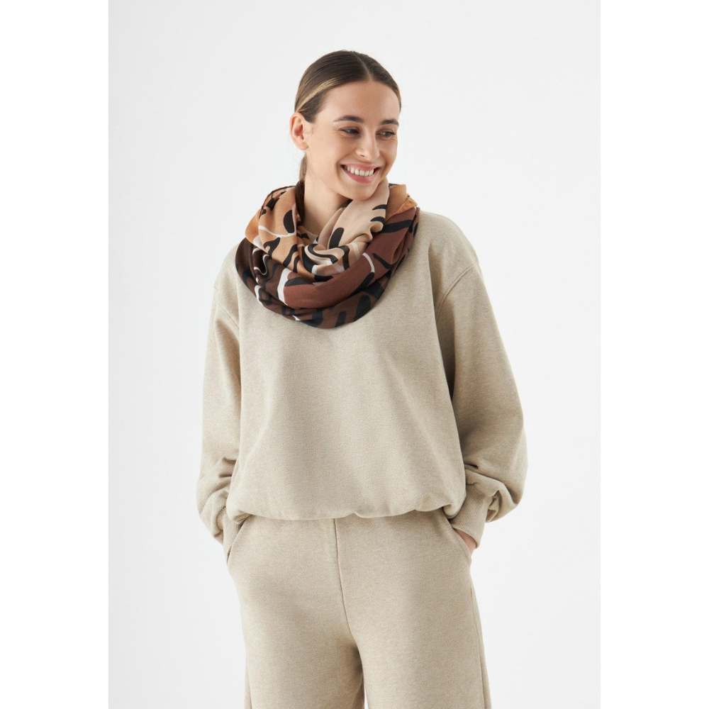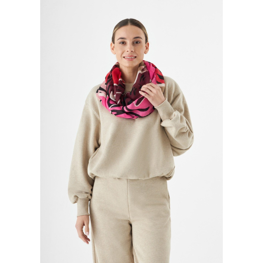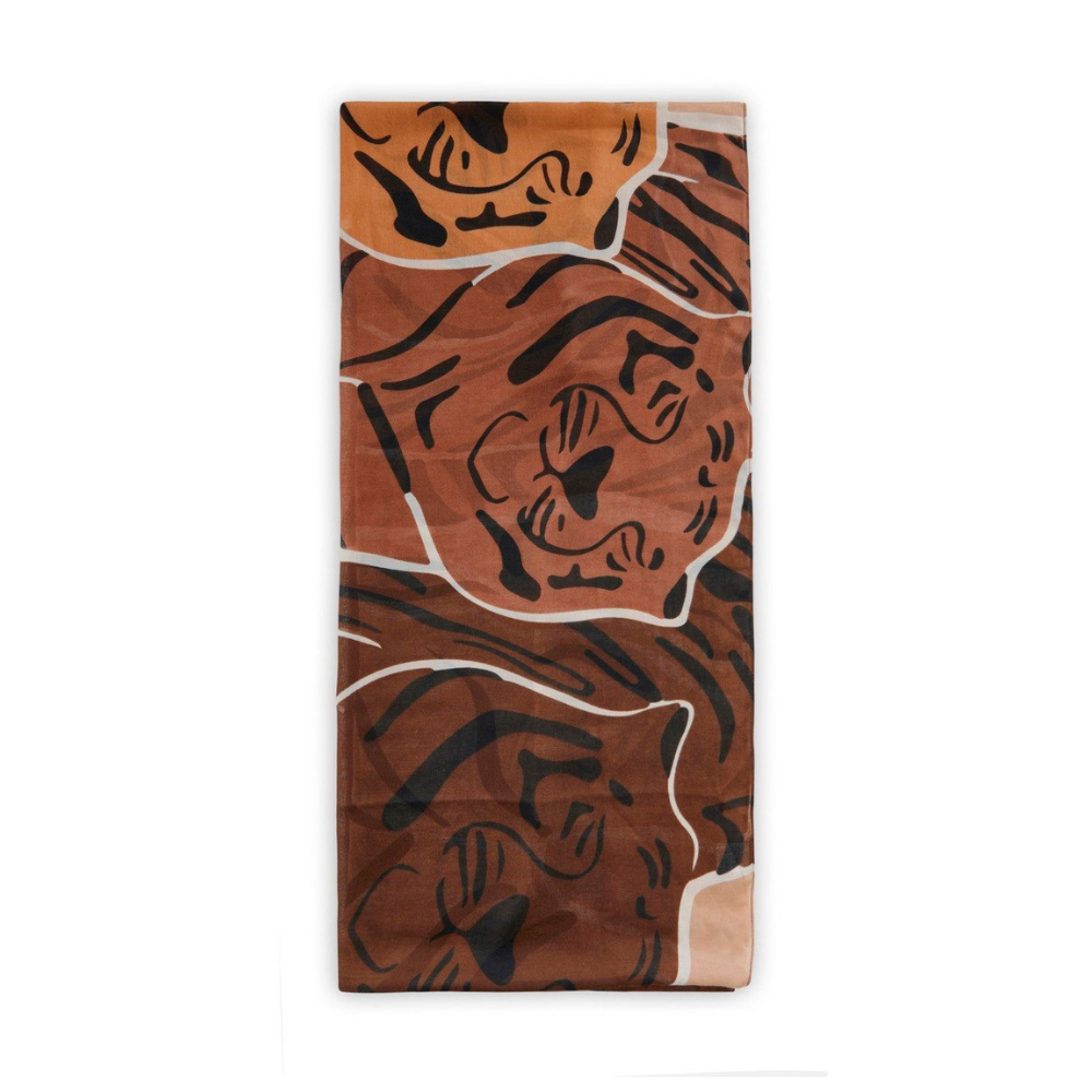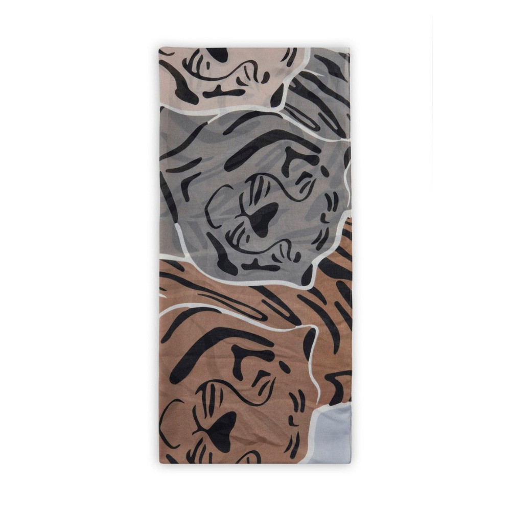 Du möchtest mit nur einem Accessoire viele verschiedene Looks kreieren? Dann ist dieser exotische Loop-Schal mit großen Tigerköpfen eine gute Wahl. Du kannst den ultrasoften Loop das ganze Jahr drinnen und draußen tragen.
