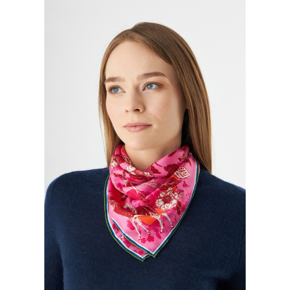 Mit Flora- und Fauna-Motiven traditionell bedruckt, ist dieses exklusive Premium Nickituch aus #1 PURE SILK ein tolles Stil-Investment. Bei Fashion Influencerinnen ist es in diesem Herbst als trendiges Halstuch zum Dirndl besonders beliebt. Natürlich kannst du das Mini-Carré auch in die Haare binden, an deine Tasche knoten oder es als cooles Armband tragen. Unsere Schals und Tücher aus reiner Seide bestechen durch ihren angenehm kühlen und geschmeidig weichen Griff, den schönen Glanz und ihre einzigartige Farbbrillanz. Produziert werden sie ausschließlich in ausgewählten, chinesischen Seidenmanufakturen, mit denen uns langjährige Partnerschaften verbinden.
