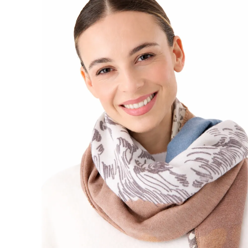 Dieser Schal fühlt sich wie eine kuschelige Umarmung an. Er wurde aus unserer wunderbar warmen und kaschmirweichen Bestseller-Qualität gefertigt und zeigt ein liebevolles XL-Hundemotiv. Du kannst ihn schon an den ersten kühlen Tagen als Eyecatcher zu dicken Outdoor-Pullis oder zu lässigen Jeans- oder Trenchjacken tragen.