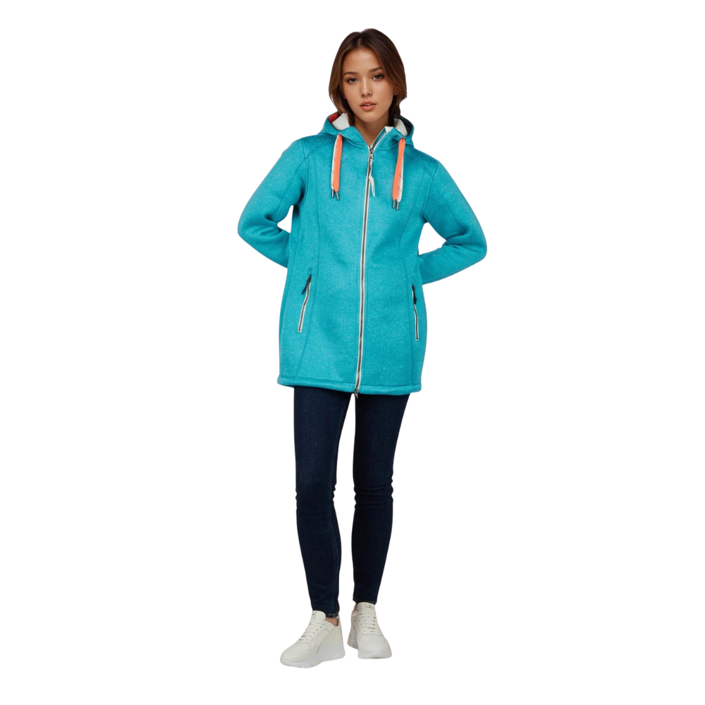 Stylischer, wärmender Strickfleece Mantel, windbabweisend, passend für einen Tag am Meer.