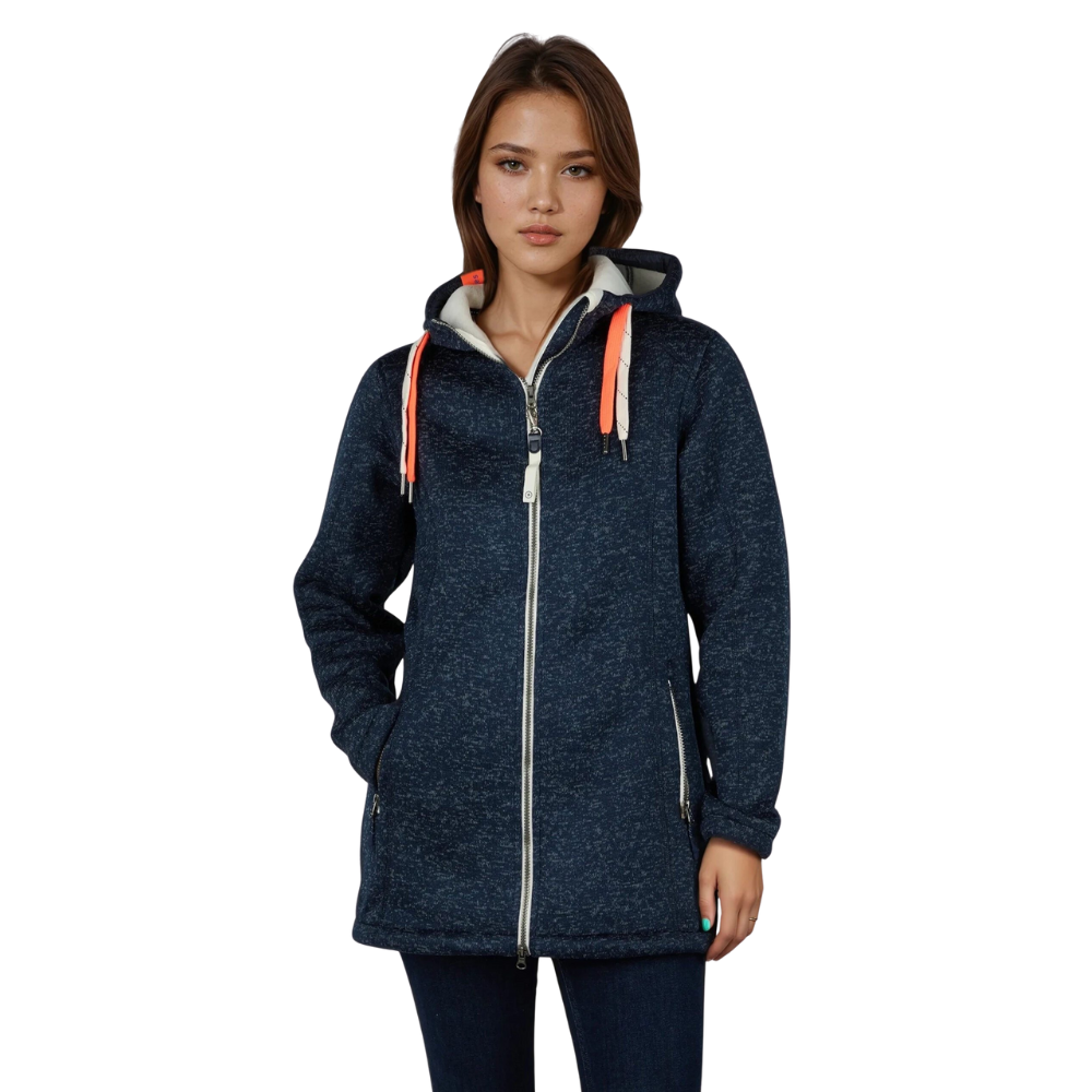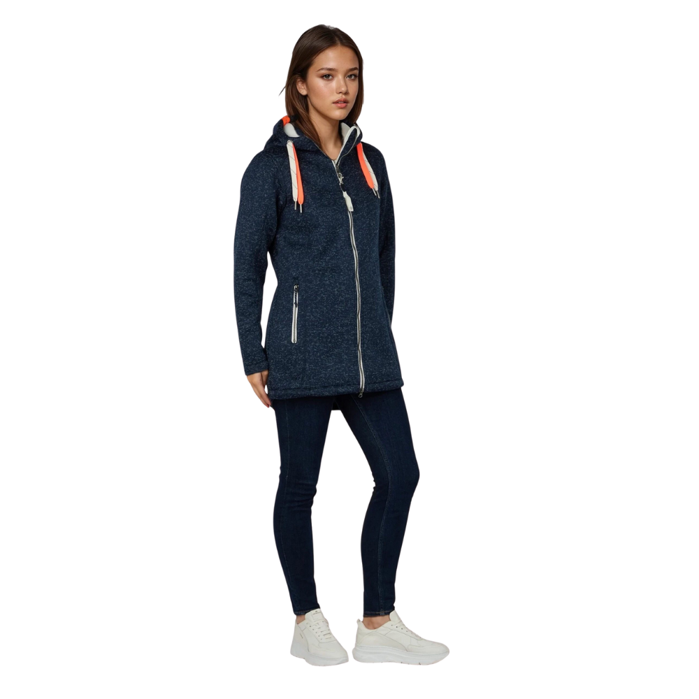 Stylischer, wärmender Strickfleece Mantel, windbabweisend, passend für einen Tag am Meer.
